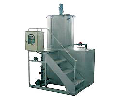 一体化加药装置是一种将粉状药剂配制成一定浓度的药液,并将其准确投加至加药点的的加药系统,主要用于给水系统、循环水系统、污泥脱水系统中高分子聚合物的溶液的制备与投加。